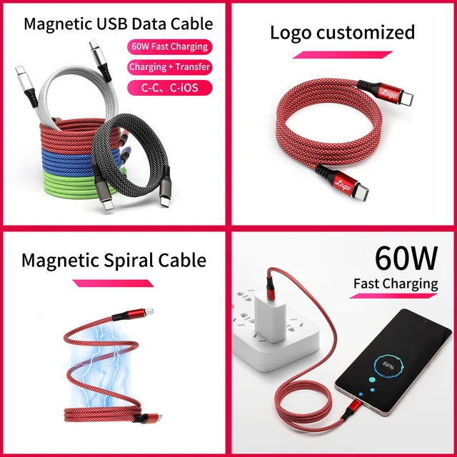 Magnetic USB-C to Type C Cable 3A Fast Charging 1m Tinned Copper Conductor Nylon Braided for iPhone Power Bank & Mobile Phone